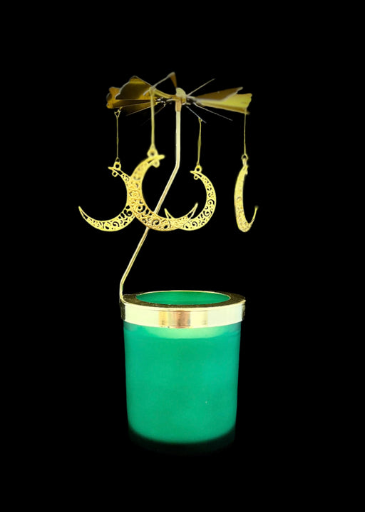 Four golden deers rotate in a clockwise direction when a lit candle is placed under the rotary blade, elegantly dancing around the until there is n...