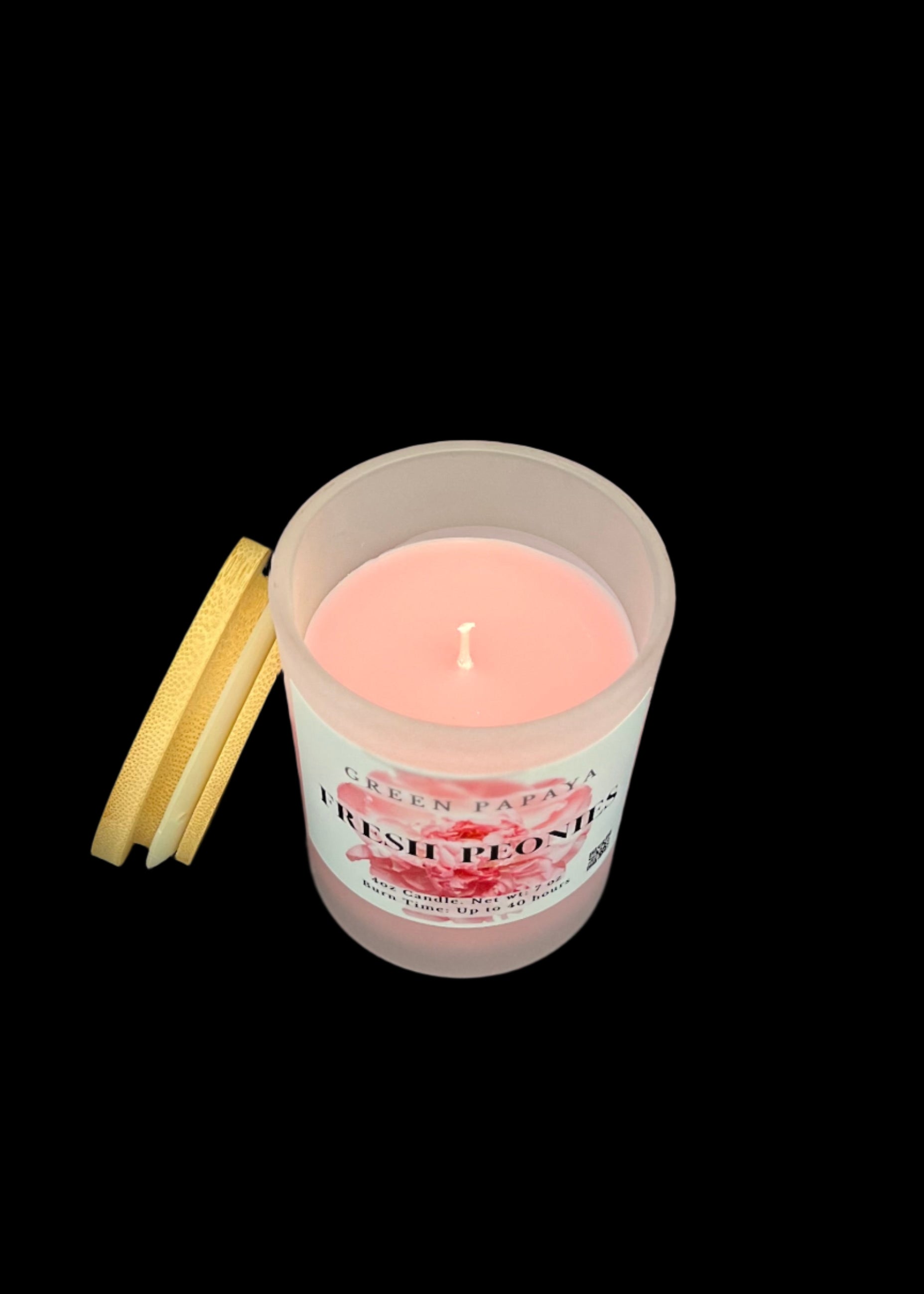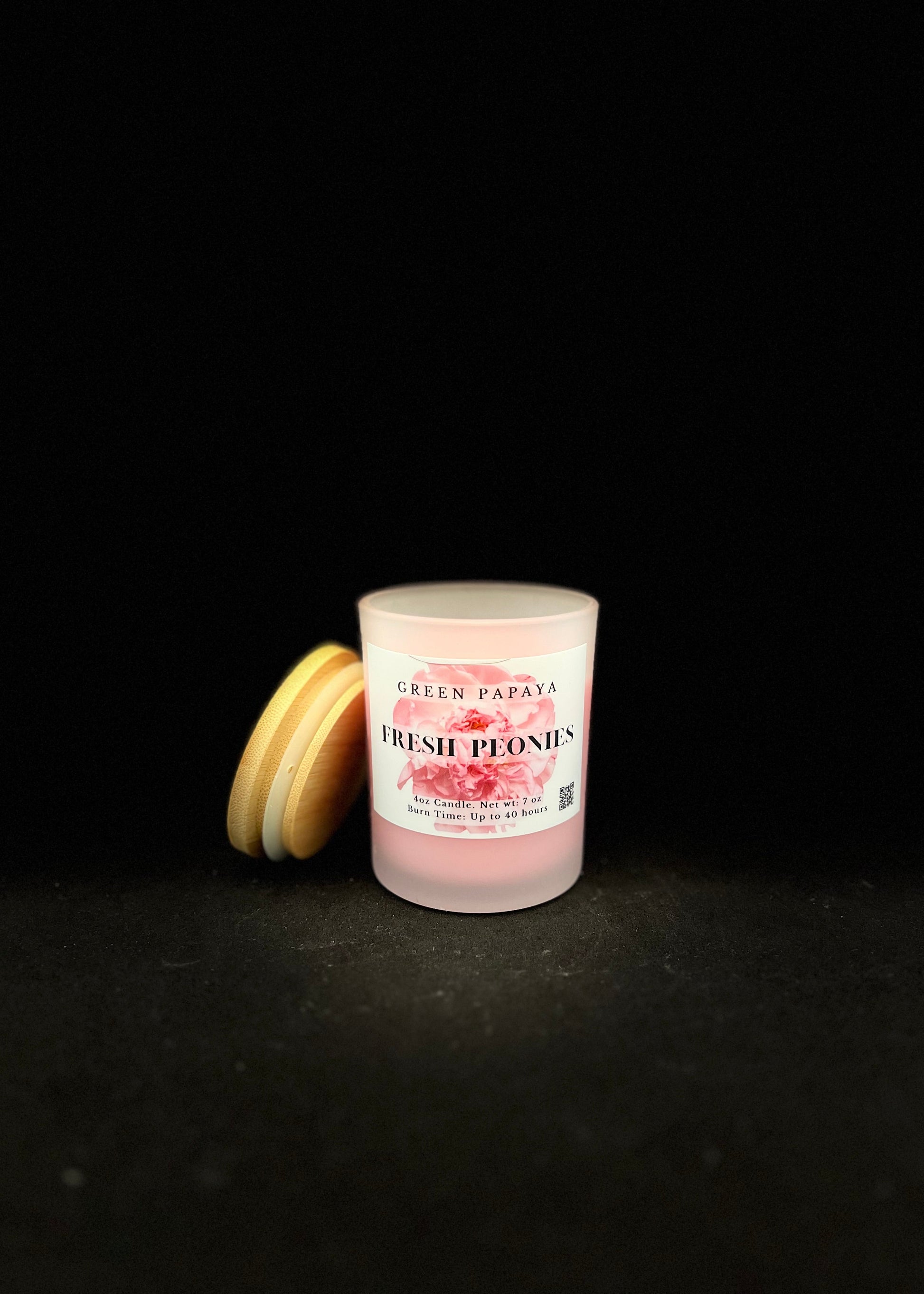 New candle alert! Our 100% soy candle scented with Fresh Peonies in a frosted candle vessel with cotton wick and bamboo lid is wonderfully fragrant. Great for scent-sitivities!