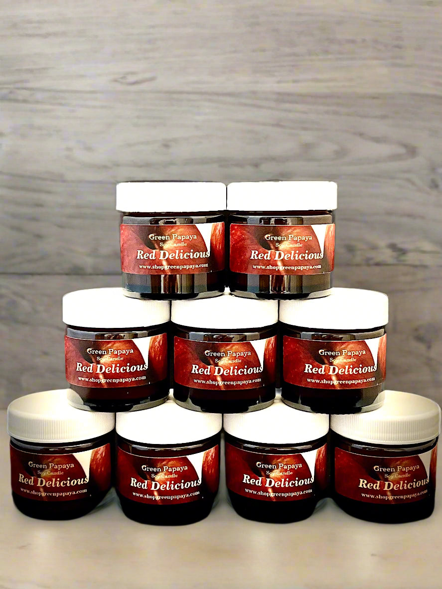 This red candle is infused with the most amazing scent of apples in an amber jar.