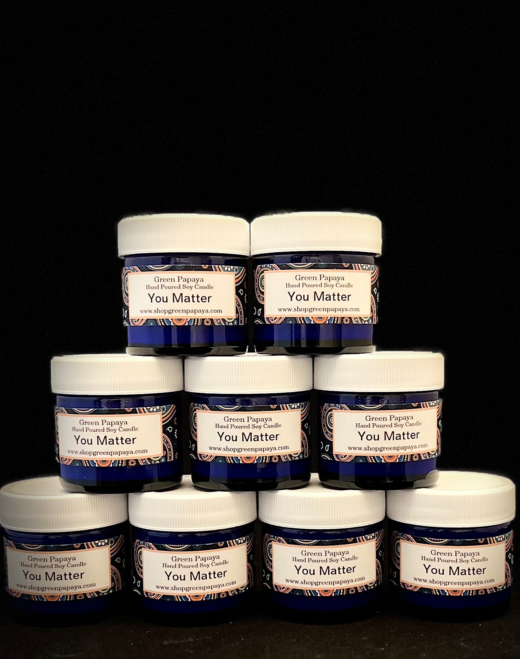 One of our newest candles, You Matter, comes in an elegant cobalt blue jar. You Matter is a candle for anyone who needs reminding that they matter, and that we all matter. The candle is scented with a pairing of strawberry and guava to create a sweet and tasty scent that is pleasing to the nose.